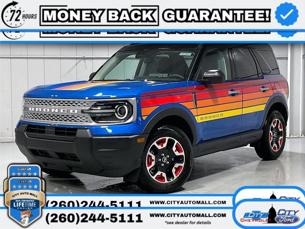 Bluetooth technology is built into this unit, keeping your hands on the steering wheel and your focus on the road. It comes equipped with Android Auto for seamless smartphone integration on the road. See what's behind you with the back up camera on this vehicle. The Ford Bronco Sport has auto-adjust speed for safe following. The state of the art park assist system will guide you easily into any spot. This model keeps you comfortable with Auto Climate. Apple CarPlay: Seamless smartphone integration for this 2025 Ford Bronco Sport - stay connected and entertained on the go! Maintaining a stable interior temperature in it is easy with the climate control system. When you encounter slick or muddy roads, you can engage the four wheel drive on this mid-size suv and drive with confidence. This vehicle has a 3 Cyl, 1.5L high output engine. This 2025 Ford Bronco Sport shines with an exquisite blue finish.