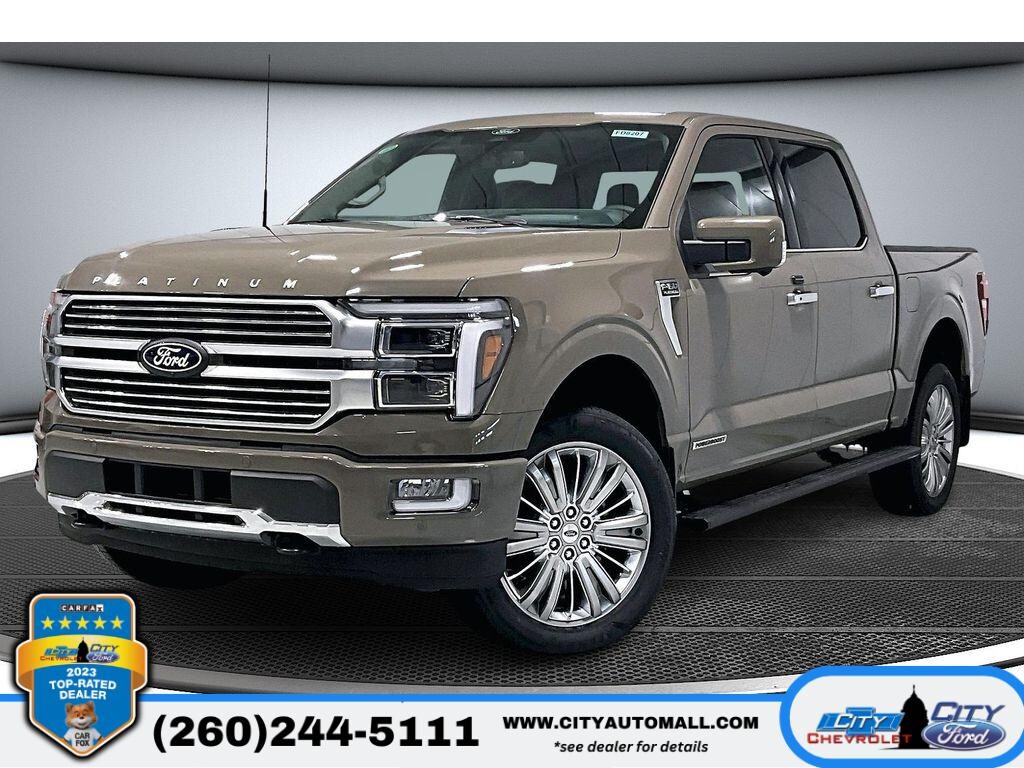 2025 Ford F-150 Platinum 4WD â" Columbia City IN. This Premium 4x4 pickup delivers powerful efficiency with a V6 3.5L Full Hybrid Electric (FHEV) powertrain, giving you smooth acceleration, exceptional fuel economy, and confident towing capability. Built for comfort and technology, the Platinum trim features Android Auto, seamless Hands-Free Bluetooth connectivity, Remote Start for cold mornings, and a Heated Steering Wheel to keep you comfortable in any season. Stay safer and more relaxed on long drives with Adaptive Cruise Control that maintains distance from traffic, while the advanced hybrid system provides responsive power and quieter operation. The spacious interior and upscale Platinum appointments make this Ford F-150 ideal for both work and weekend adventures. Four-wheel drive ensures traction across a variety of road conditions, and the hybrid efficiency helps reduce trips to the pump. Located in Columbia City IN, this 2025 Ford F-150 Platinum is competitively priced and ready for immediate delivery. We're offering the best price on this modelâ"don't miss out on exceptional value for a premium hybrid truck. Contact us today to schedule a test drive, confirm availability, or get pre-approved financing. Experience this efficient, powerful Platinum Ford F-150 in person and drive home with confidence.