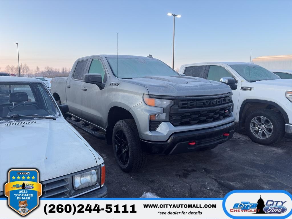2023 Chevrolet Silverado 1500 Custom Trail Boss â" low mileage, best price in Columbia City, IN! This rugged 4WD pickup pairs a fuel-efficient 4-cylinder, 2.7L gasoline engine with just 25,389 miles on the odometer, offering strong capability and long-term value. Ideal for work, weekend adventures, and daily driving, the Custom Trail Boss delivers Chevy toughness with modern convenience. Safety and driver-assist tech include Lane Departure Warning and Lane Keep Assist to help maintain lane position on highways. Stay connected and entertained with Apple CarPlay, and enjoy comfort on chilly mornings with Remote Start. The vehicle comes with a CARFAX Clean Report, providing added peace of mind about its history. This Chevrolet Silverado 1500 features trail-ready styling and 4WD traction for confident handling in varied conditions. With low mileage, this truck represents an exceptional opportunity to own dependable performance without new-vehicle pricing. We're offering the best price in Columbia City, IN â" competitively priced to sell quickly. Contact us today to schedule a test drive and experience the Chevrolet Silverado 1500 Custom Trail Boss in person. Don't miss this low-mileage, feature-packed 4x4 at the best price in Columbia City â" ready to go to work or play.