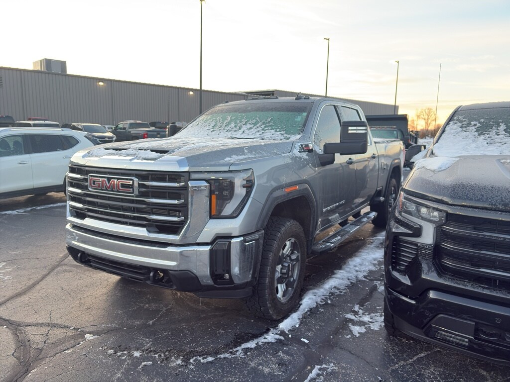 For sale: 2025 GMC Sierra 2500 SLE â" located in Columbia City, IN. This rugged 4WD heavy-duty pickup packs a powerful V8 6.6L diesel engine and just 24,000 miles, delivering exceptional towing capability, long-term durability, and low mileage value. Priced to move, this GMC Sierra 2500 SLE offers the best price in the area for comparable models, combining performance and savings. Comfort and convenience features include a heated steering wheel and remote start for cold-weather ease, while safety tech like lane departure warning helps keep you confident on long hauls. Stay connected with Android Auto and rely on the built-in back-up camera for precise maneuvering and safer parking. The durable interior was designed for work and daily driving, and the diesel V8 provides the torque you need for heavy loads and trailering. This GMC Sierra is an ideal choice for contractors, frequent travelers, and truck enthusiasts seeking a low-mileage, well-equipped diesel pickup at a competitive price. Stop by in Columbia City, IN to inspect, test drive, and see why this 2025 GMC Sierra 2500 SLE represents outstanding value. Contact us today to schedule a showing and secure the best-priced diesel 4WD truck on the lot.